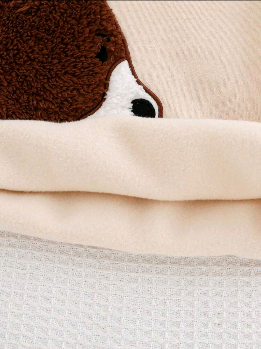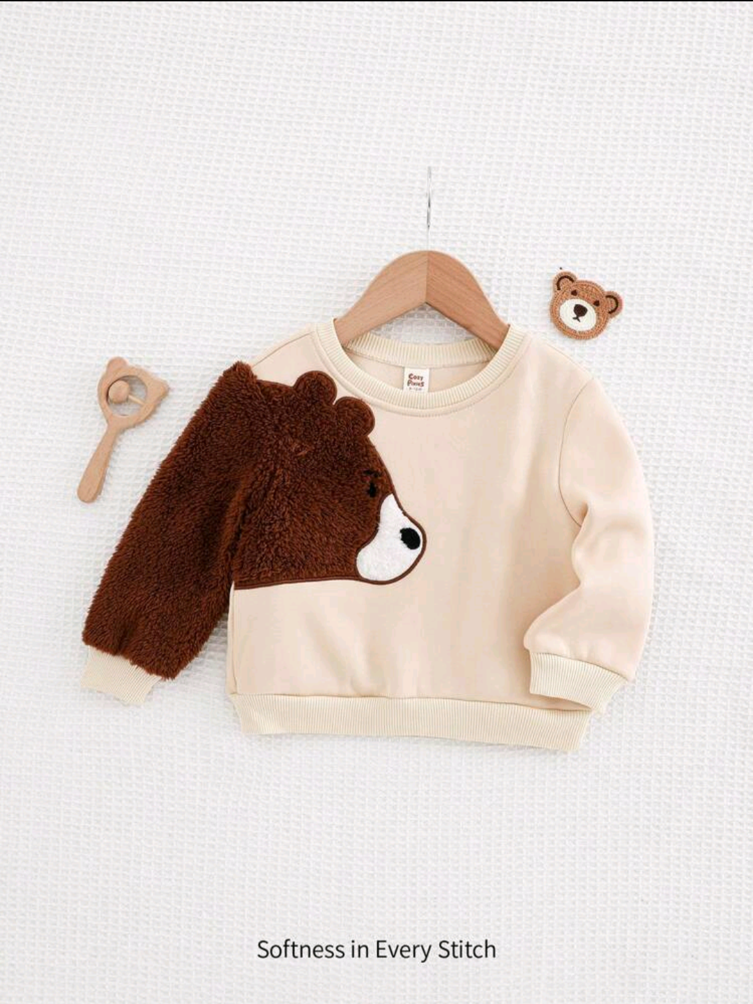 Este buzo combina texturas: algodón suave y una manga de peluche irresistible.